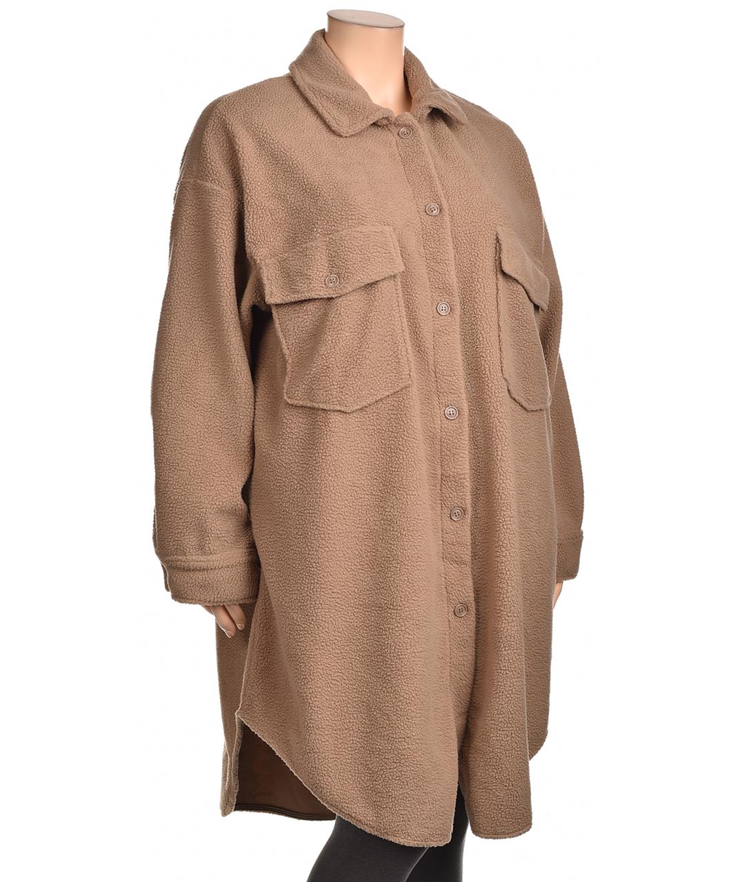 Кафяво дамско палто оверсайз от плюшена материя с яка, копчета и два полезни джоба. Меко и топло, подходящо за есен-зима, модерно и удобно за ежедневно носене. Подчертава силуета и се комбинира лесно. XL