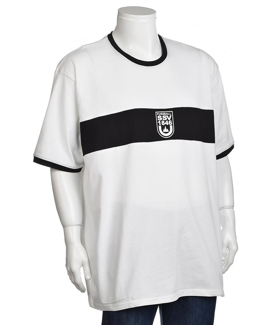 Мъжка тениска от 100% памук в бяло с класически дизайн. Има черна хоризонтална лента и емблема в средата. Ръкавите са къси, с черен кант, който допълва актуалния стил. Идеална за ежедневно носене.