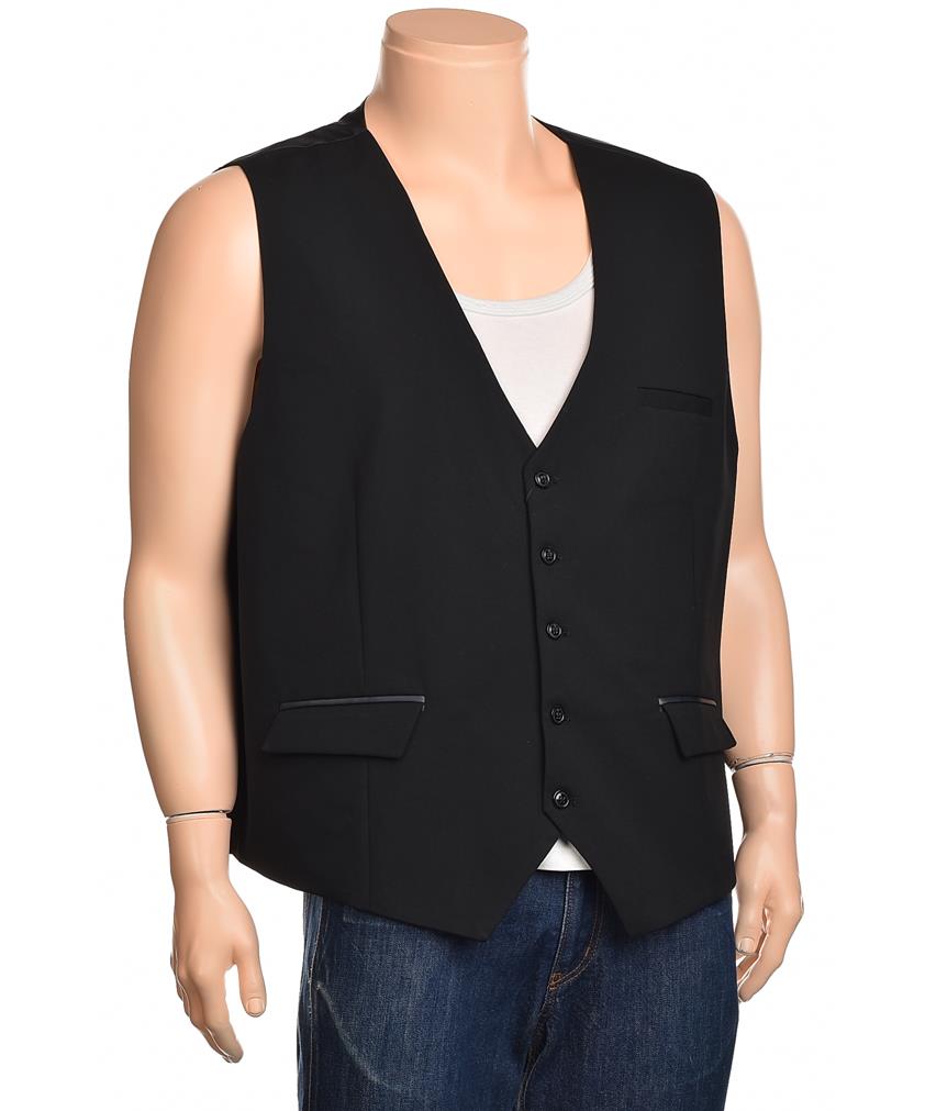 Черно мъжко елек с класическа V-образна яка, пет копчета и два джоба с капак. Елегантна, изчистена кройка за официални и ежедневни визии. Удобно прилягане и качествена изработка. Подходящ за гардероб.