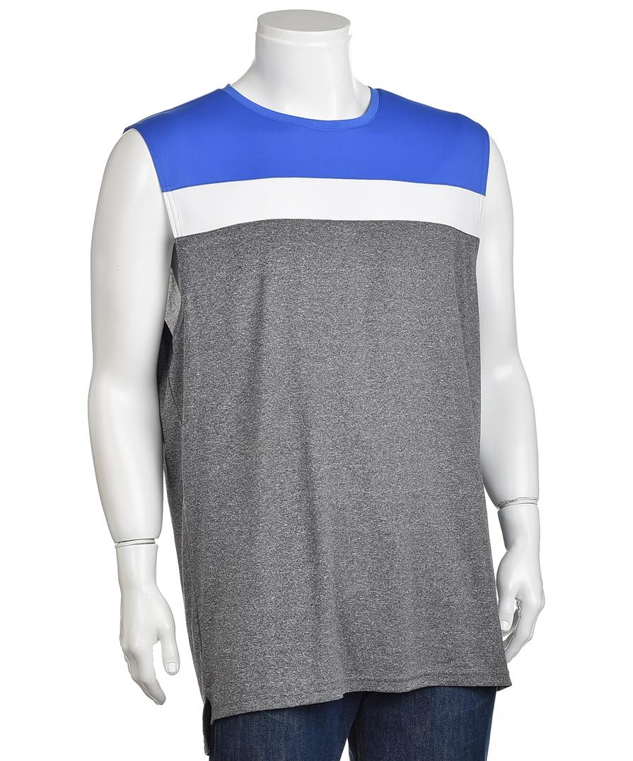 Мъжки потник със спортна визия в три цвята - горната част е синя, следвана от тънка бяла и долна сива секция. Изработен от лека и удобна материя, подходящ за ежедневно носене и спорт.