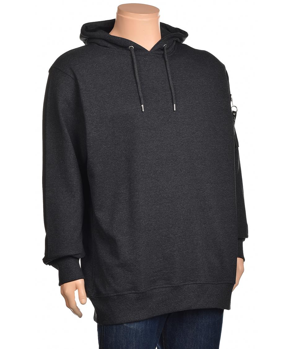 Мъжки памучен суичър с качулка и връзки. Мек и дишащ материал, свободна кройка, ластични маншети и подгъв. Идеален за ежедневие и спорт, лесен за поддръжка, класически тъмен сив нюанс. Модерен дизайн.